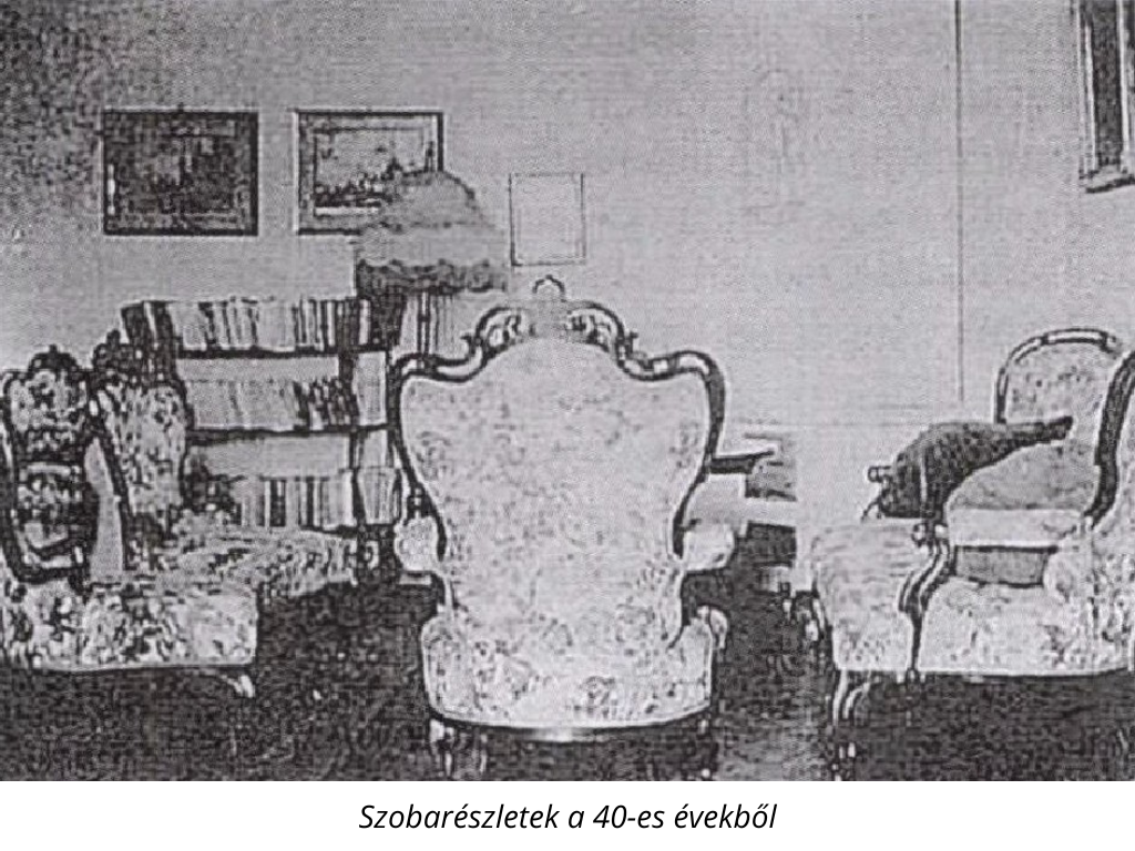 család azt örökre elhagyta. Az 1945 januárjában Losoncon átvonuló front, és az utána kezdődő szabad rablás, majd a későbbi szocialista átépítések pótolhatatlan károkat okoztak. A benesi dekrétumok alapján konfiskált kastélyépületet különböző célokra, legtovább szaktanintézeti diákotthonként használták. Eredeti berendezése elpusztult, elkallódott. Az érzéketlen, sőt vandálnak nevezhető építészeti beavatkozásokra jellemző, hogy a földszinti dolgozószoba díszes kandallójának kőkeretét egyszerűen leverték, hogy ne álljon ki a falból...