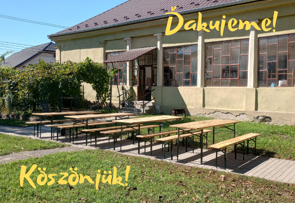 ”Z poskytnutej dotácie, na základe VZN č. 25/2014, sa nám podarilo zaobstarať 4 kusy pivného setu, typu: Set pivný DORTMUND Max, stôl rozmerov 220x70x77 cm + dve lavice rozmerov 220x25x47 cm.“