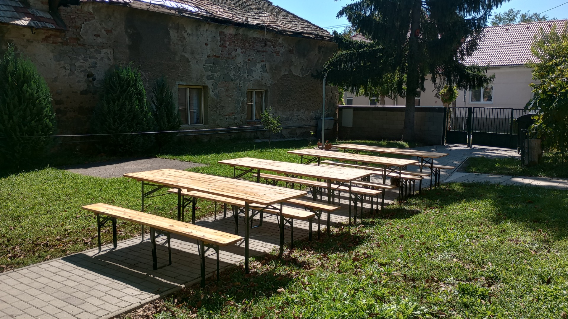 Z poskytnutej dotácie "z vlastných príjmov BBSK účelovo určených na akcie vo verejnom záujme alebo v prospech rozvoja územia BBSK a na podporu všeobecne prospešných služieb, podnikania a zamestnanosti", na základe VZN č. 25/2014, sa nám podarilo zaobstarať 4 kusy pivného setu, typu: Set pivný DORTMUND Max, stôl rozmerov 220x70x77 cm + dve lavice rozmerov 220x25x47 cm.